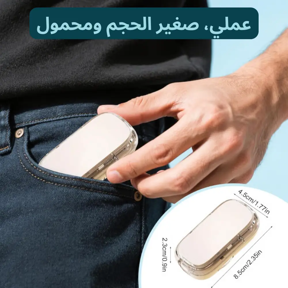 - راحة أثناء السفر: خفيفة ومحمولة، تجعل جدول تناول الدواء منظماً خارج المنزل.