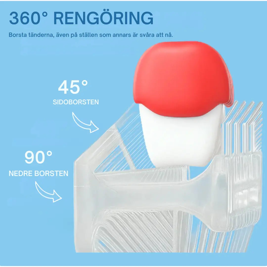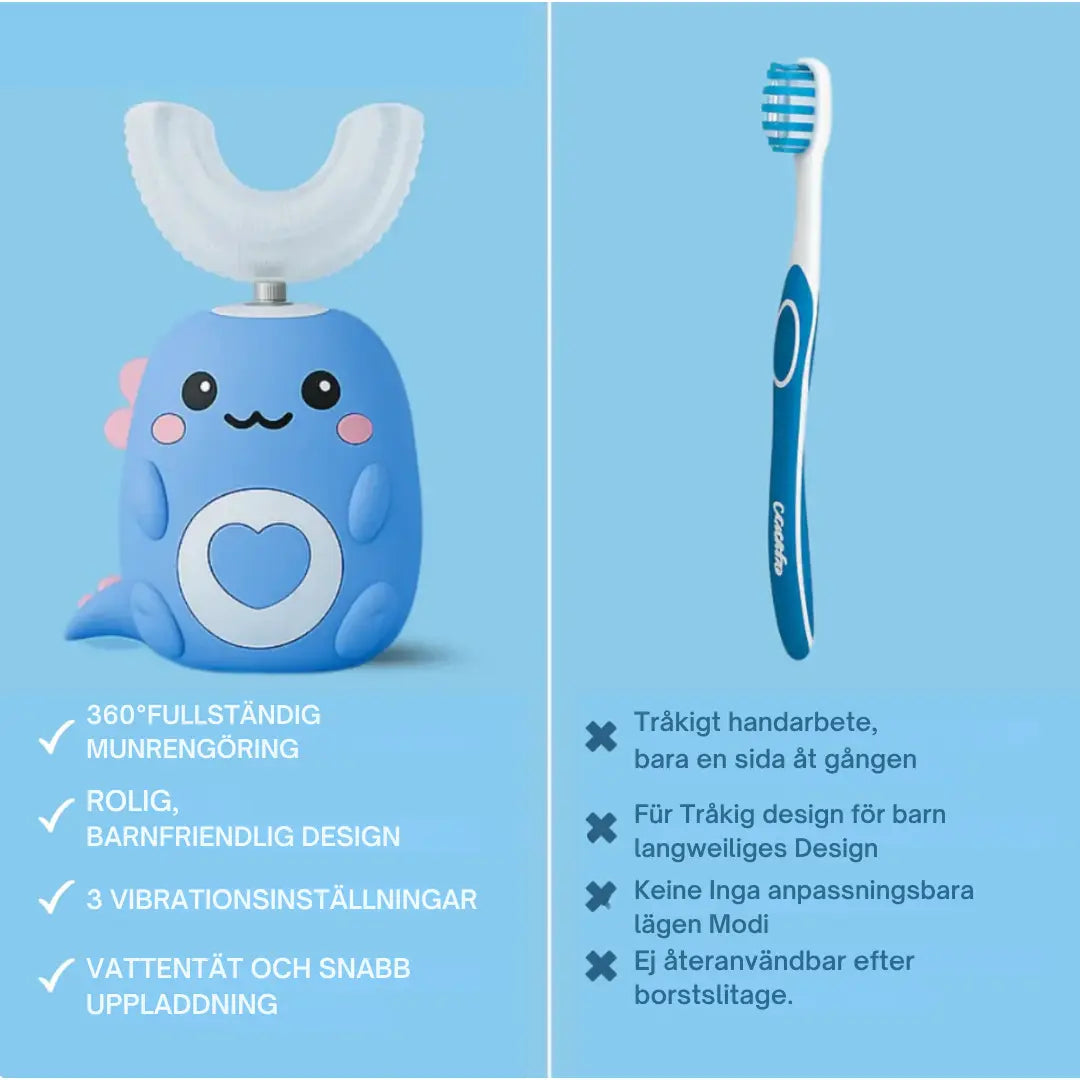Därför använder vi endast högkvalitativ silikon till våra borst och använder noggrant utformade vibrationsmönster som rekommenderas för tänder och tandkött under tillväxt. (Liknande eltandborstar för barn.)
